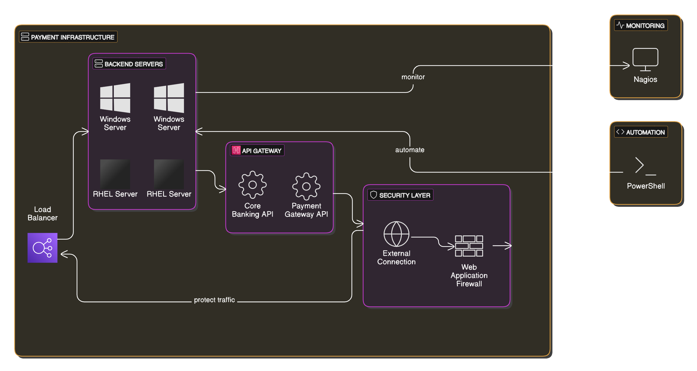- Infrastructure Deployment: Managed end-to-end deployment of Windows Server and Red Hat Enterprise Linux (RHEL) platforms tailored to real-time payment processing.