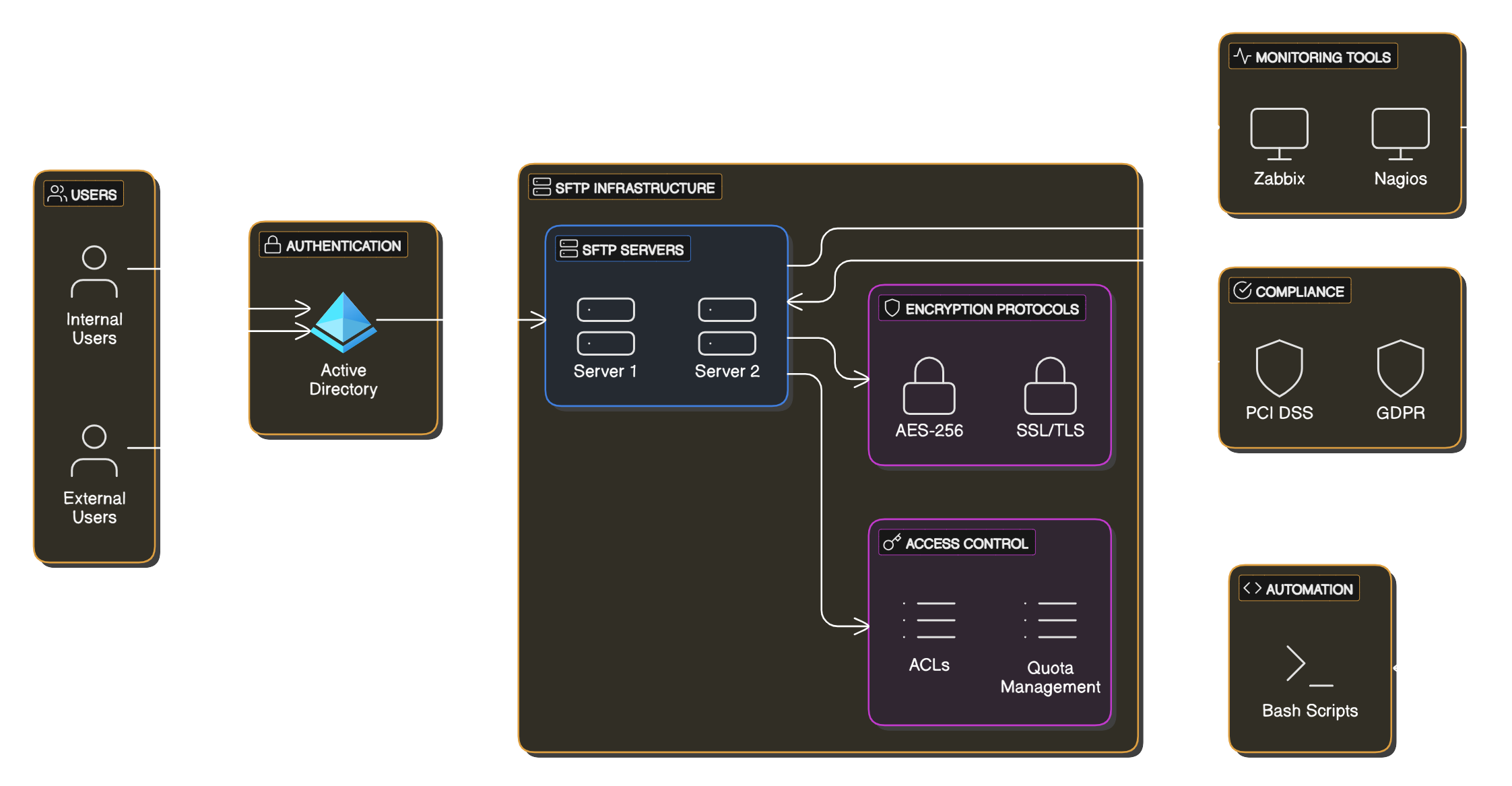 - Access Management: Implemented secure file access using Access Control Lists (ACLs) and quota management.