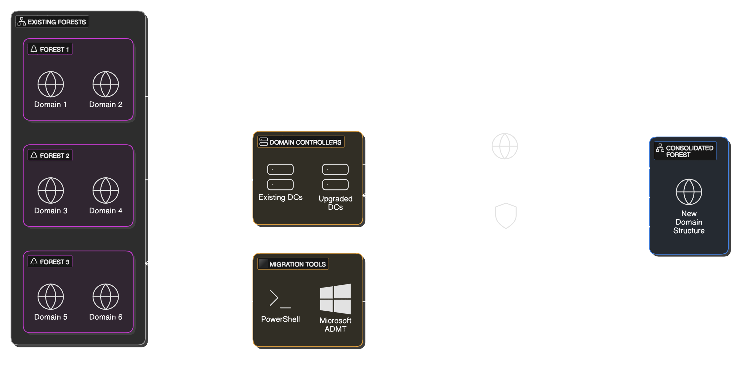 - Upgraded and consolidated multi-forest Active Directory architecture, improving security and operational efficiency across the organization.